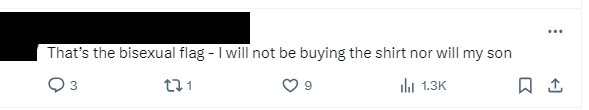 ‘That’s the bisexual flag – I will not be buying the shirt nor will my son’